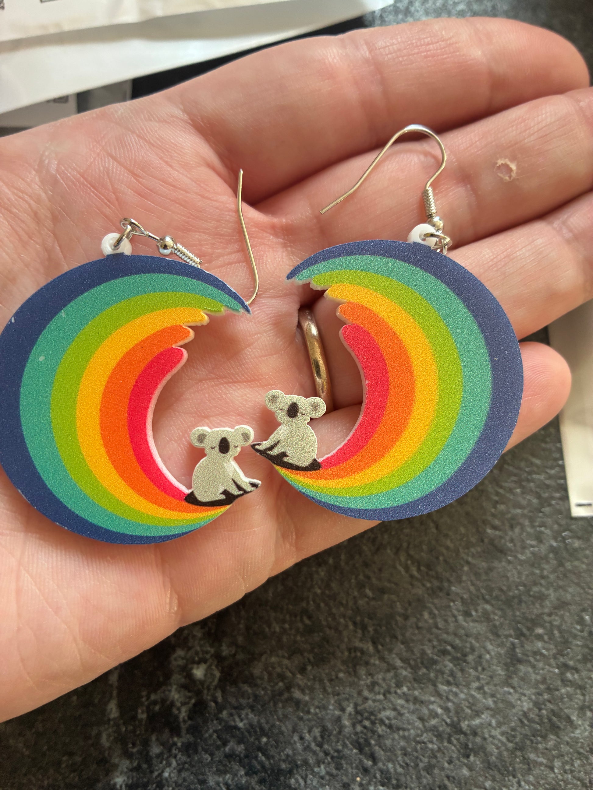 Koala on a Rainbow Acrylic earrings