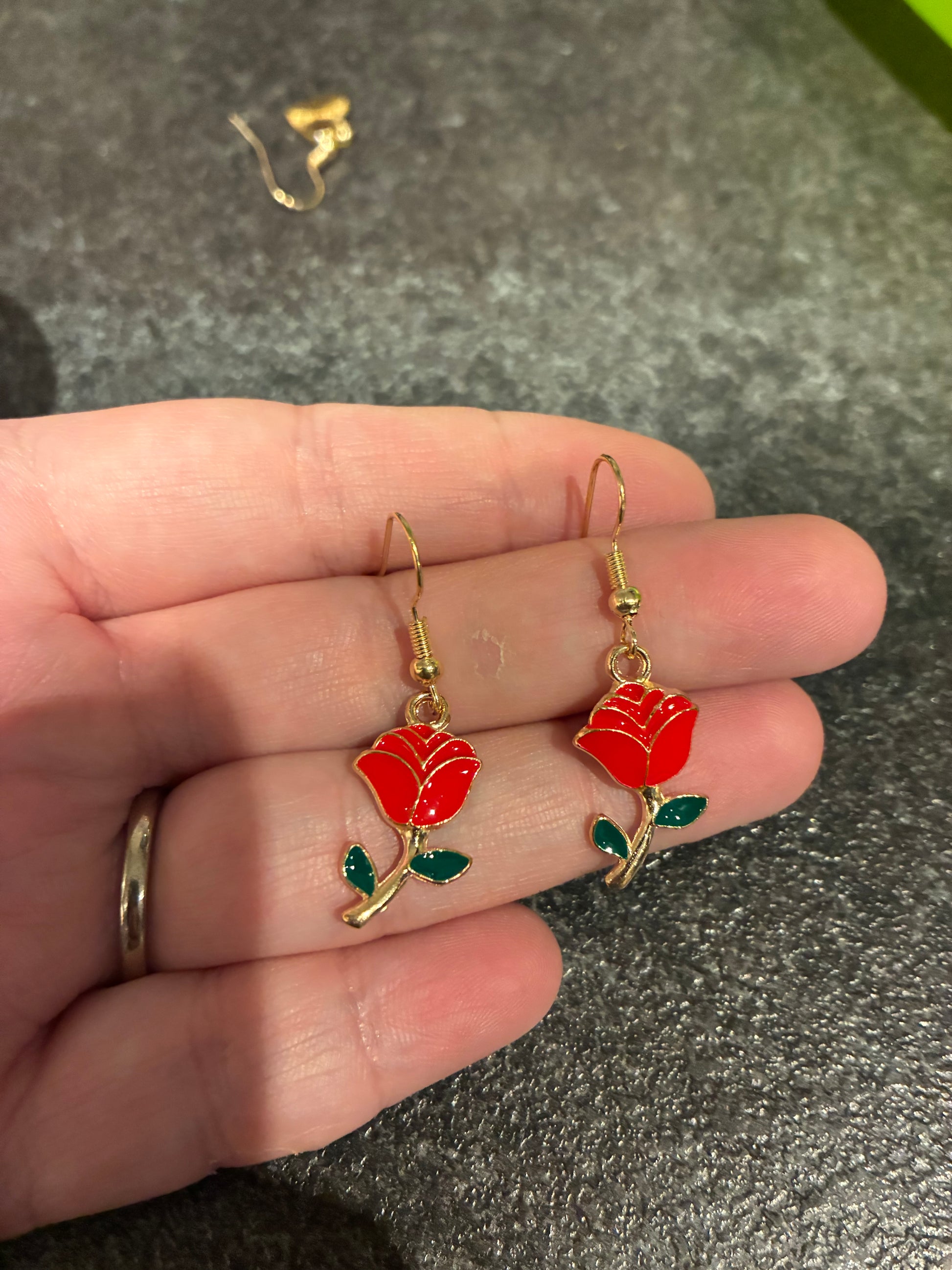 Red rose Enamel earrings