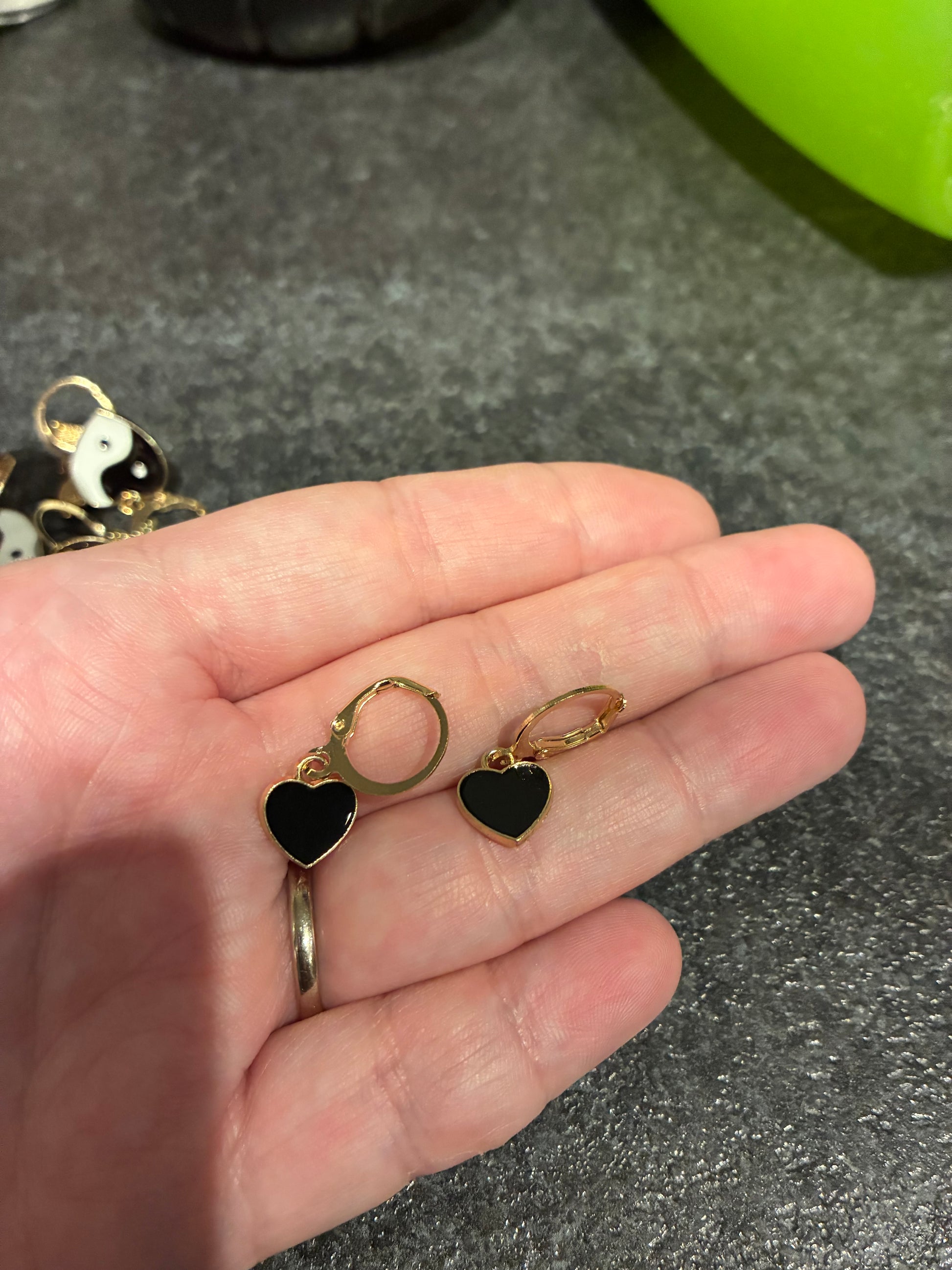 Black Heart Hoop Enamel earrings