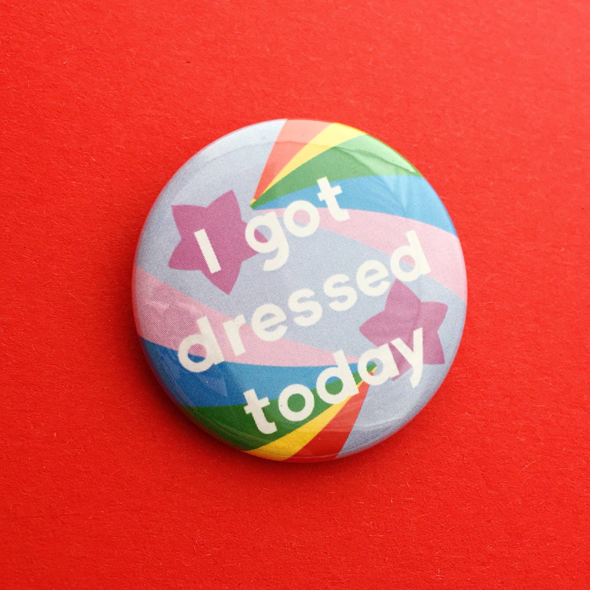 This 38 mm button badge design is from our Adult Achievement Stickers and features the "I got dressed today" design - celebrate small victories and reward yourself with this badge of positivity.