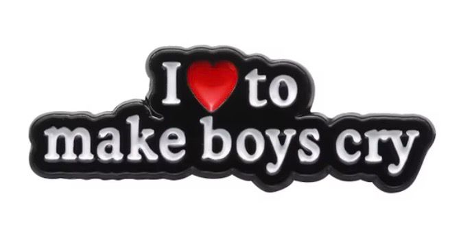 Wear your sense of humor with pride with our "I love to make boys cry" pin badge. This edgy accessory not only adds a touch of sass to any outfit, but also showcases your playful attitude. Perfect for those who don't shy away from a little mischief. Pin in on and get ready to make a statement!
