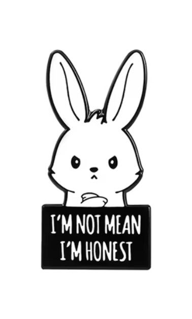 Express yourself with our "I'm Not Mean, I'm Honest" pin badge featuring a cute cross-rabbit design. Show off your assertive and honest personality with this unique accessory. Perfect for adding a touch of sass to any outfit.