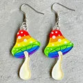 Add a pop of color to your outfit with our Rainbow Mushrooms dangling earrings. These cute earrings feature a playful rainbow design and are shaped like mushrooms. Spread joy while dressing up your style with these playful earrings.