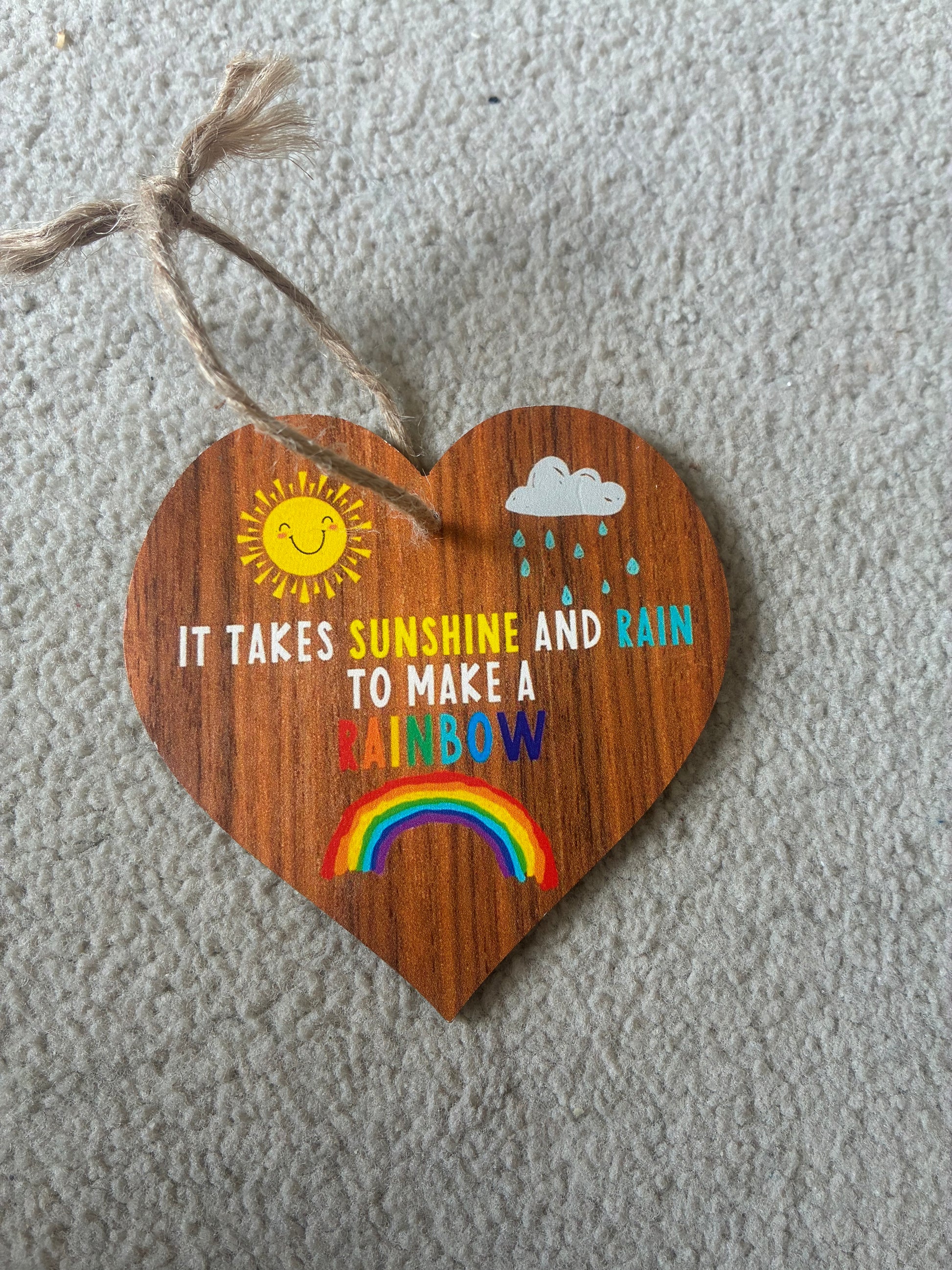 Looking for a heartfelt gift? Look no further than our Wooden Heart Rainbow Design. Its beautiful inspiring message will brighten anyone's day. The rainbow design adds a touch of color, while its sturdy construction ensures it will last for years to come. Give the gift of love and inspiration today.