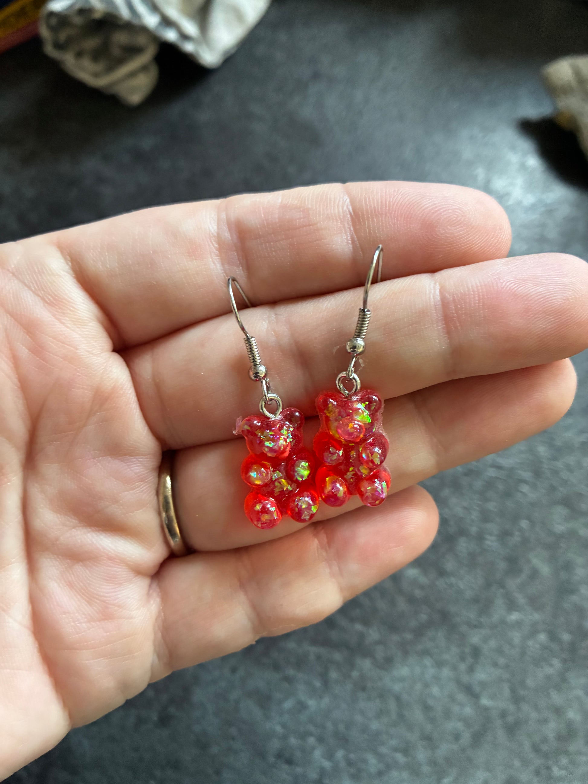 Red Glittery Gummy Bear Earrings