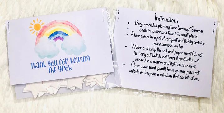 Show your appreciation with our "Thank you for helping me grow" Plantables gift. Each gift includes plantable stars that will bloom into beautiful wild flowers, complemented by a rainbow card design. The perfect gift to show gratitude to teachers, and help the environment grow.