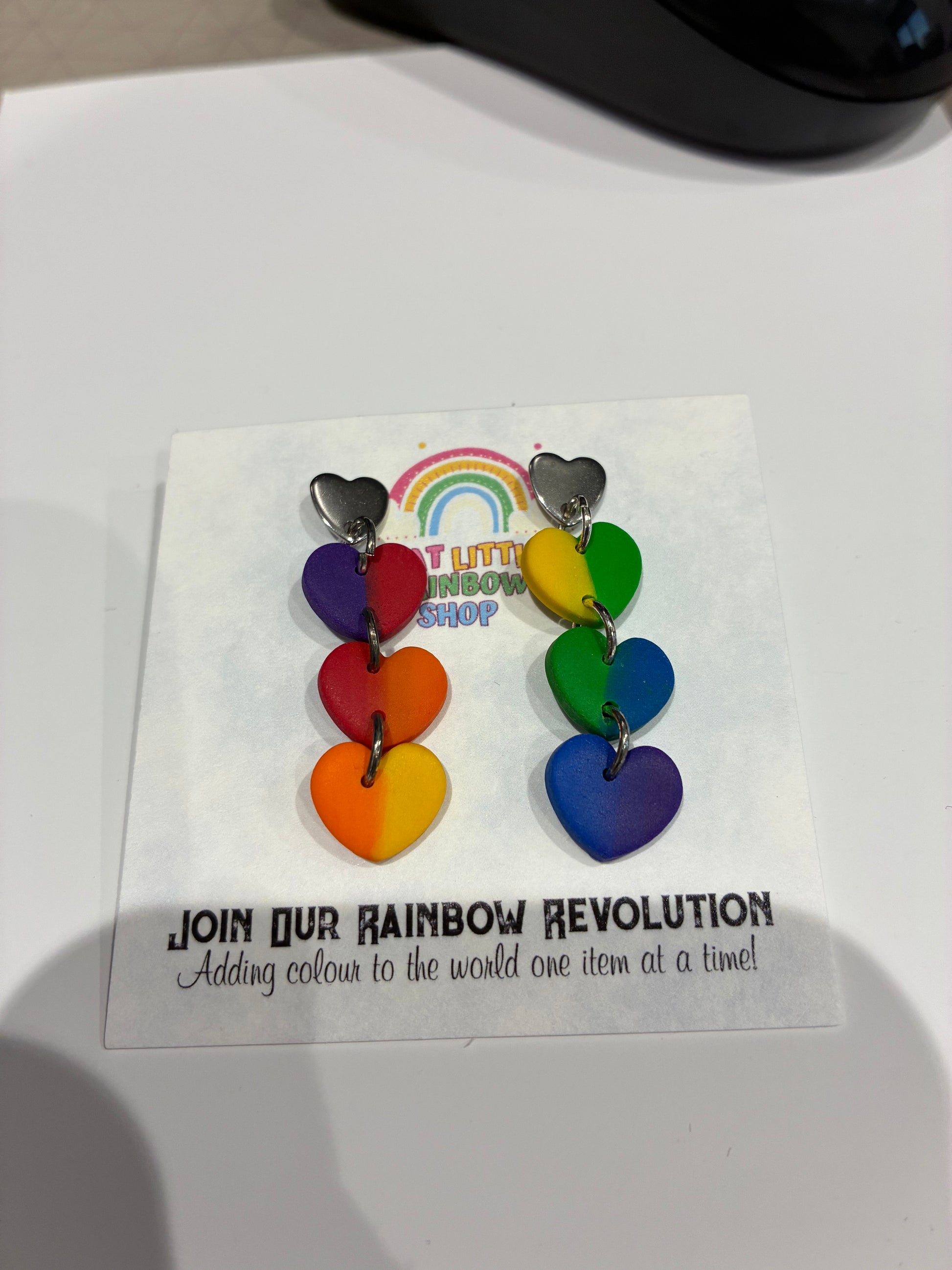 Rainbow hearts Unique handmade polymer clay earrings
